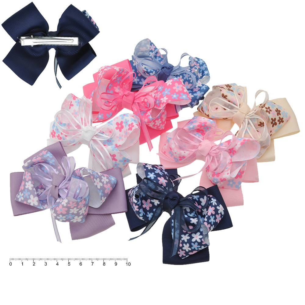 Привлекательный аксессуар с легкостью дополнит любую прическу, выгодно подчеркнув красоту и очарование образа. Набор заколок декорирован объемным текстильным бантиком, который выполнен в многослойной технике. Яркое изделие станет восхитительным подарком для модницы любого возраста, которая обожает экспериментировать и создавать авторские прически.