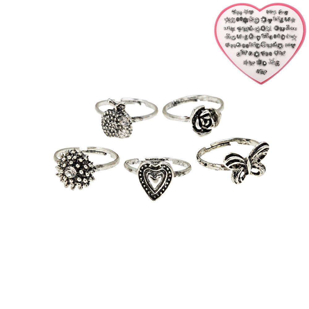 Набор колец 72шт серебристые (14516)