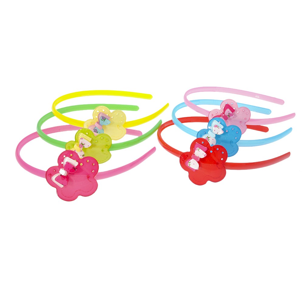 Ободок для волос с пластиковым украшением — прекрасный презент для юной модницы. Основание декорировано цветочком с бантиком, окрашенным в тот же цвет, что и основная деталь. Подобное украшение придаст очарования даже обыкновенной укладке. В комплекте присутствуют ободки различных оттенков, что позволяет легко выбирать подходящую под настроение и стиль одежды модель.