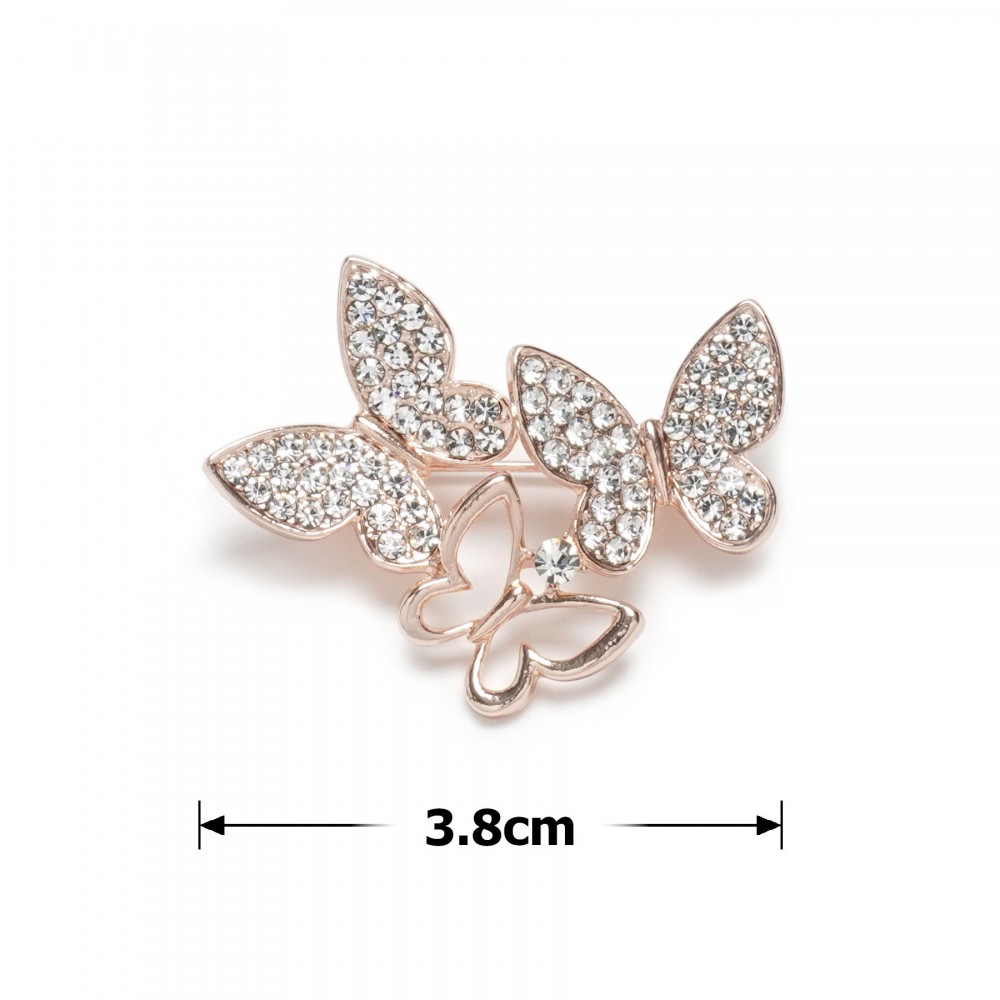 Брошка металева зі стразами Метелики 3.8см (31778)