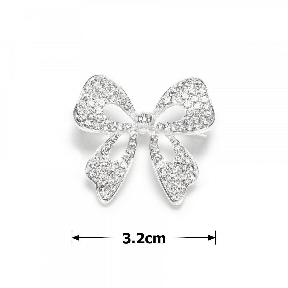 Брошка металева зі стразами Бантик 3.2см (31777)