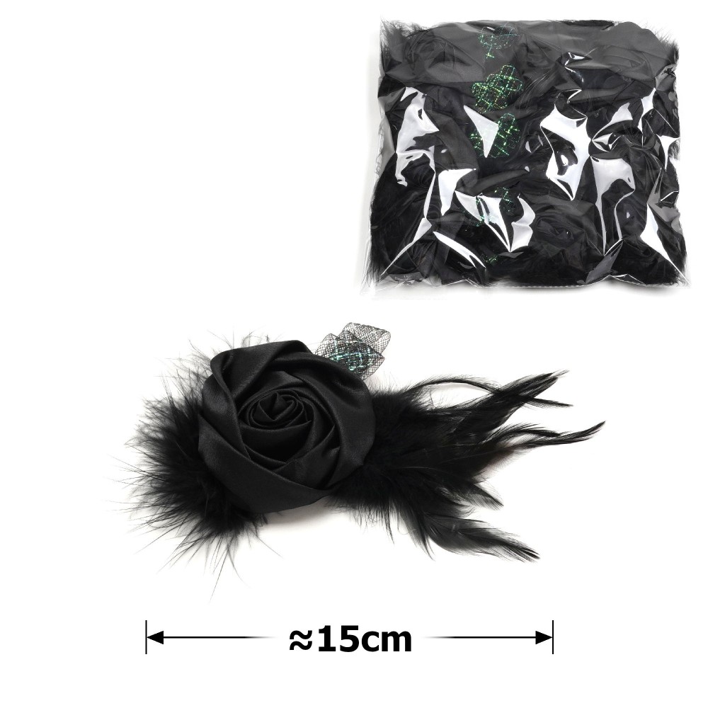 Набір квітів-заготовок з пір'ям 15см чорний (31118)