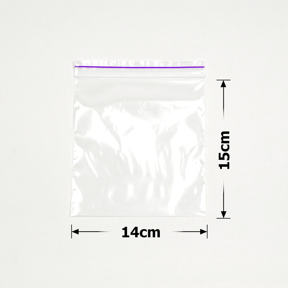 Сам замок розташовується у верхній частині пакета і виглядає як дві тонкі смужки. Напрямні елементи плавно з'єднуються внахлест, герметично стикуються, а при необхідності легко відкрити їх. В одному наборі є 50 прямокутних виробів, які виконані у розмірі 14*15 см.