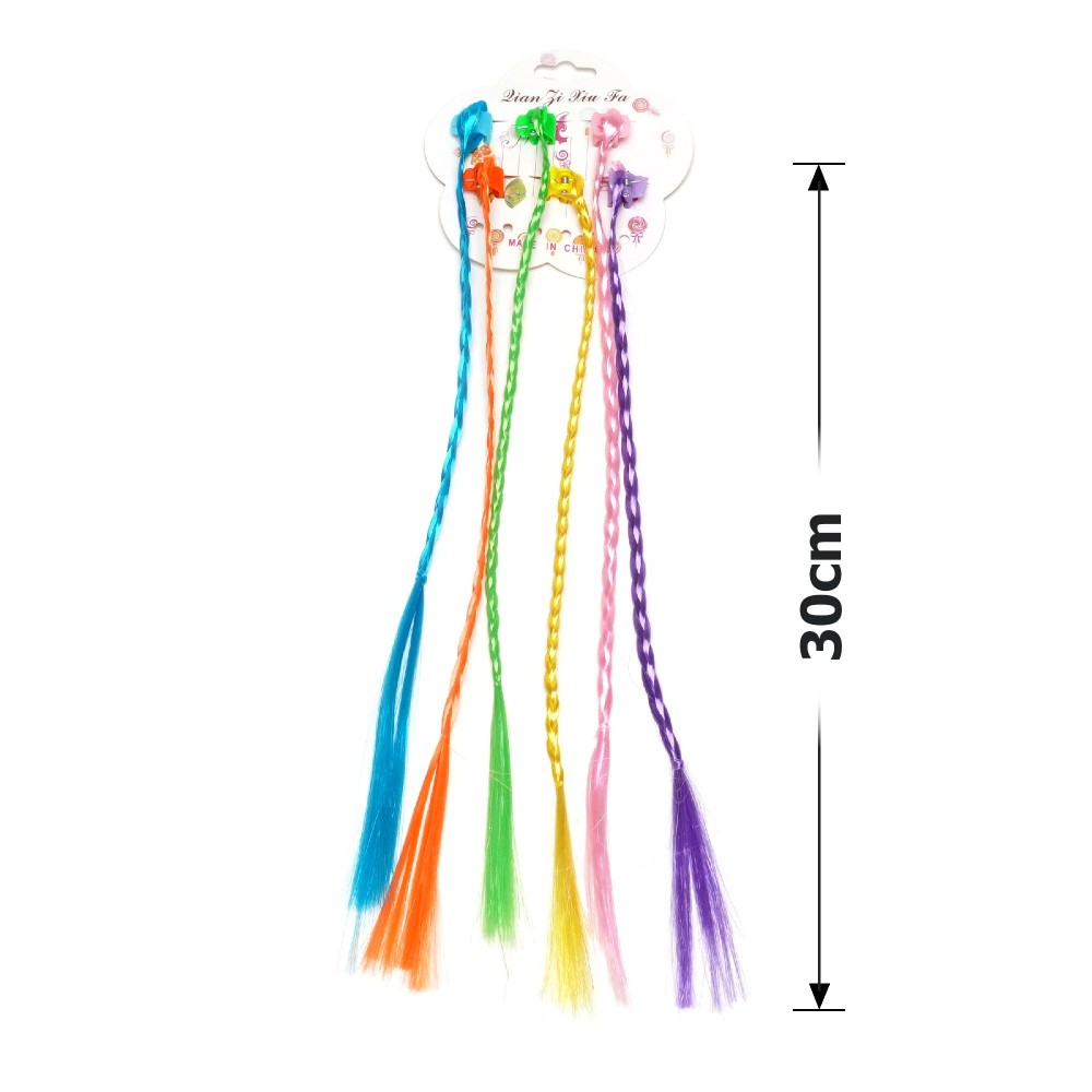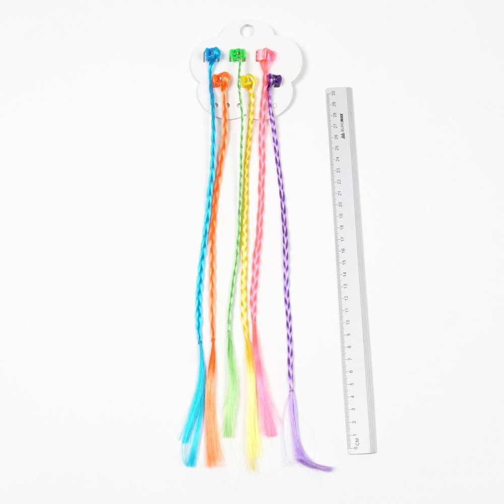 Дитячі кольорові косички на затискачах (набір 6 шт.)